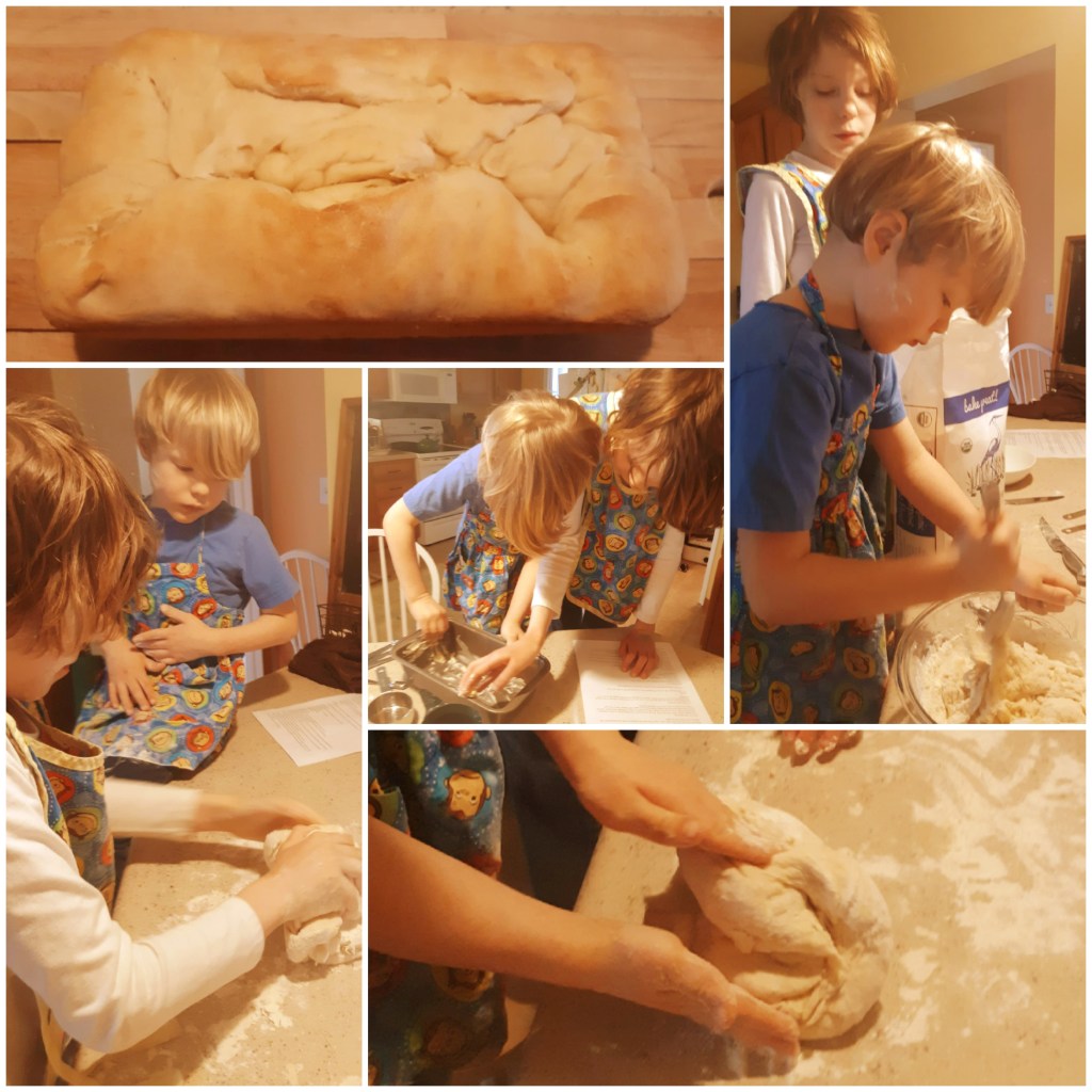I’m now using Tuesday mornings to teach my children to bake, and in baking there’s nothing more basic than bread. This morning Alyosha and Silas proofed the yeast and waited for it to bubble. They wore their arms out stirring in the flour. They threw their whole bodies behind the kneading of the dough. They beat the risen dough down with their fists.
