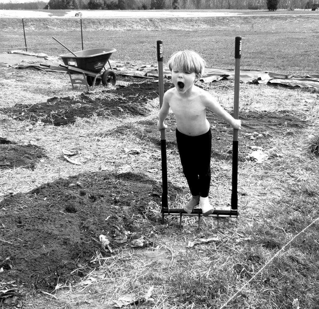 And yet, jumping, rocking, pulling, plunging, something starts to settle in me. The fog of all of my imagined anxieties can no longer compete. This chore is hard enough to take all that I’m carrying and work it down into the dirt. And when I am finished for the day, I can sit back, emptied and exhausted and irrationally happy and finally calm.